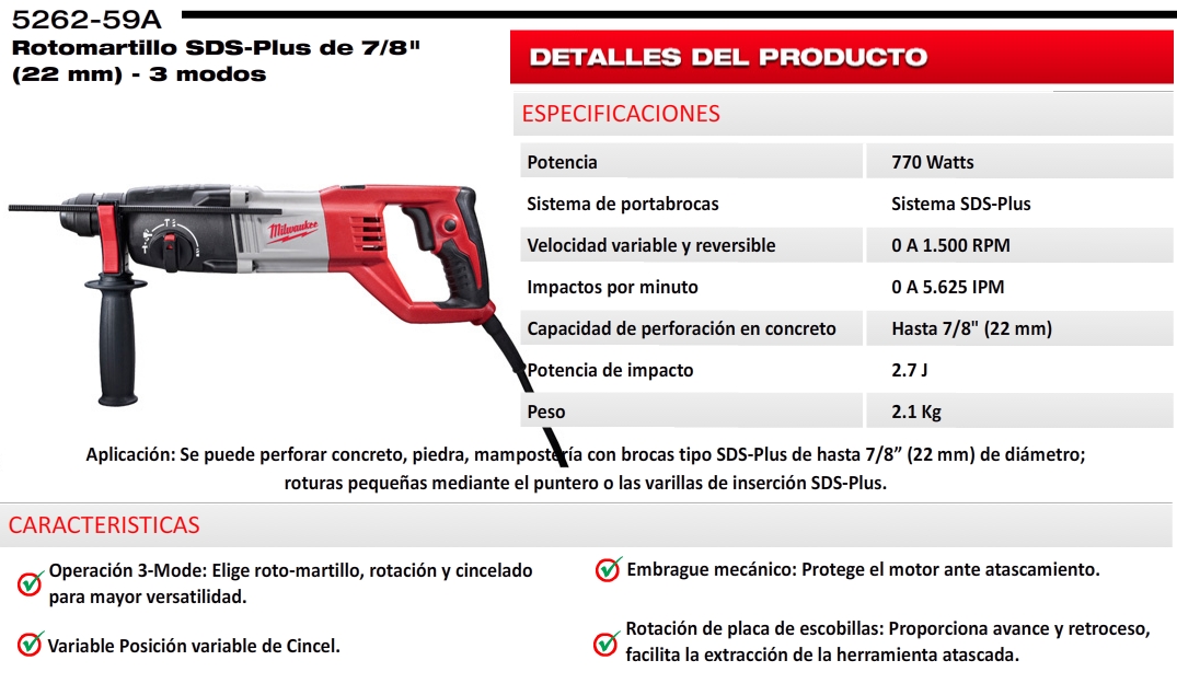 Accesorios incluidos: Empuñadura lateral y limitador de profundidad